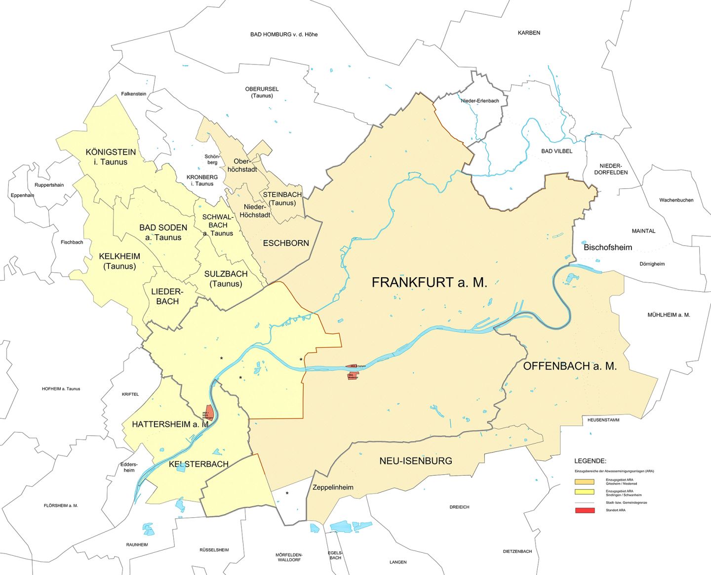 Einzugsbereich der Abwasserreinigungsanlagen