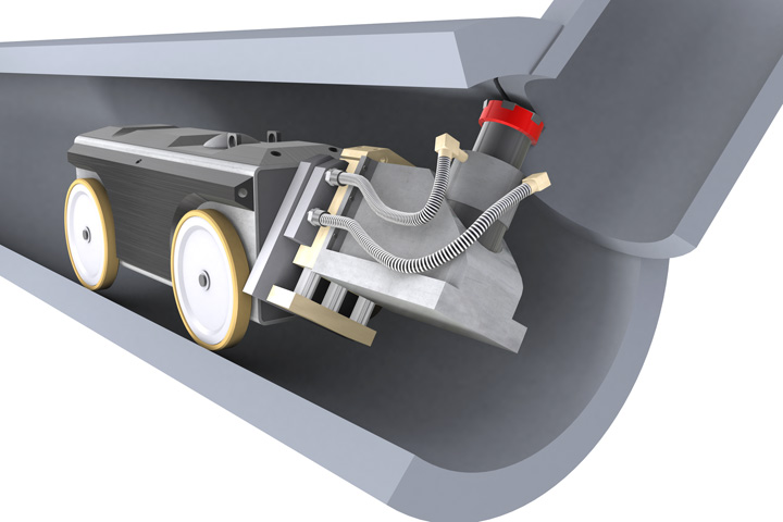 Hereinragende Anschlüsse, Wurzeln oder verfestigte Ablagerungen lassen sich mit einem Reparaturroboter von innen ausfräsen.